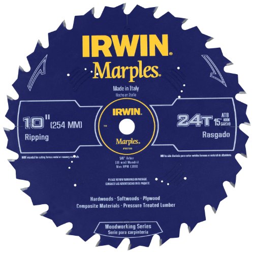 Description : The Irwin Tools 1807366 Marples Laser Cut 10-Inch 24-Tooth Alternate Tooth Bevel Circular Saw Blade is part of a full line of fine woodworking saw blades that are manufactured in Italy to the highest standards of precision required for fine woodworking and finish carpentry. These industry-leading laser-cut, thin kerf saw blades are produced in a highly-automated, state-of-the-art facility in Udine, Italy - the heart of high-quality circular saw blade manufacturing. Engineered with oversized, high-quality carbide, the new Marples Woodworking Series saw blades provide the extended life and flawless finish professional woodworkers and finish carpenters demand. The blades are precision tensioned for flawless cuts. They also feature a heat resistant, non-stick coating that has an Aluminum Matrix added to it to dissipate heat for easy clean up and truer, cleaner cuts. The 10-Inch 24-Tooth blade features an alternate top bevel where the teeth alternate between a right and left bevel to form a knife like edge on either side for cleaner cut. This blade is ideal for ripping on a table saw. The 10-Inch 24-Tooth blade works great on hardwoods, softwoods, composite materials and pressure treated lumber.