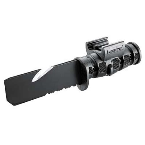 Description : Meet Mini Tac Tool, the latest addition to LaserLyte's unique line of Pistol Bayonets. LaserLyte, in association with Ka-Bar Knives, offers the new Mini Tac Tool that features a web cutter, serrated blade and unique chiseled edge. The Mini Tac Tool was specially designed by prominent knife maker Ethan Becker of Becker Knife and Tool, who has designed survival knives and tools for more than thirty years. The razor-sharp, 2.75 inch Ka-BarĂ’ blade fits on any medium to large pistol with rail and slides on and off easily with the press of two buttons. Its stainless steel blade is sharpened to a fine edge and finished with a black oxide coating for protection. Featuring a full tang design, the blade also comes with a custom polymer sheath. The blade handle is constructed from 30 percent glass-filled nylon for extra strength and durability. A LaserLyte original, this Pistol Bayonet is ready for any situation - or just looking cool on your favorite gun.