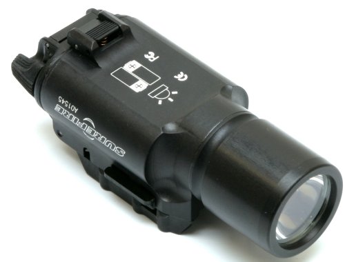 Description : The SureFire X300 features a high-efficiency LED that generates 110 lumens of brilliant white light focused by a Total Internal Reflection (TIR) lens to produce a tight beam with good reach and significant surround light for peripheral vision. The LED has no filament to burn out or break and generates tactical-level light—enough to overwhelm an aggressor's night-adapted vision—for 2.4 hours per set of batteries. The high-strength aerospace aluminum body is Mil-Spec hard anodized for superior toughness and corrosion resistance, and is O-ring and gasket sealed to make it submersible to 22 meters. The X300 Rail-Lock system comes with adapter plates permitting rapid attachment to and removal from either Universal or Picatinny rails. An ambidextrous push/toggle switch provides one-finger operation for either momentary or constant-on operation. Optional pistol grip switches permit operation with the top grip finger, leaving the index finger free to operate the handgun trigger. Other switches are available for operating the X300 when attached to a long gun. FITS: Handguns and long guns with Picatinny or Universal rails. Adapter mounts available for several non-railed handguns.