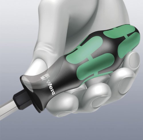 Description : Wera Kraftform 6 Piece Screwdriver set is designed for the Professional user. Lasertip micro-rough drive tip bites into the fastener to ensure a perfect fit and reduce cam-out effect. All Wera hand tools feature the trademarked ergonomic Kraftform handle, with hard and soft zones, that fits the shape to the hand for the ultimate in comfort and high-speed torque transfer. Handle marking on top of handle includes screw symbol and size of tip to easily find the right screwdriver in your toolbox or workplace. Anti-roll protection at base of handle stops screwdrivers from rolling away at workplace. Limited Life Time Warranty. Set contains 4 Slotted - 1/8” (no Lasertip), 5/32”, 7/32”, 1/4” and 2 Phillips - PH1, PH2. Includes wall-mounting rack for convenient storage and tool retrieval. Wera – The Best Tools For The Job!